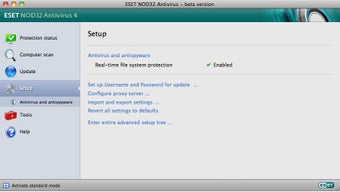 ESET CyberSecurity propose une série d'outils complet, du scan avancé de la machine à la détection des menaces, quelle que soit la plate-forme ciblée, des graphiques, des statistiques et des logs, le scan des médias amovibles, le support proxy, l'automatisation (et programmation) des tâches, le support des processeurs 32 et 64 bits.